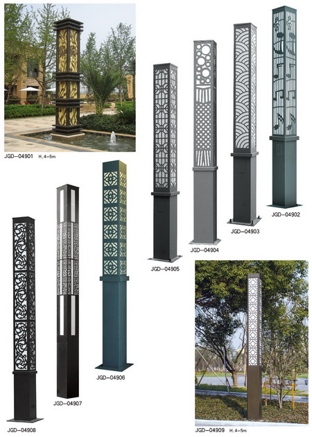 景觀燈分類:城市標志性景觀燈、仿古景觀燈、鏤空現代景觀燈、不銹鋼景觀燈、藝術造型景觀燈等